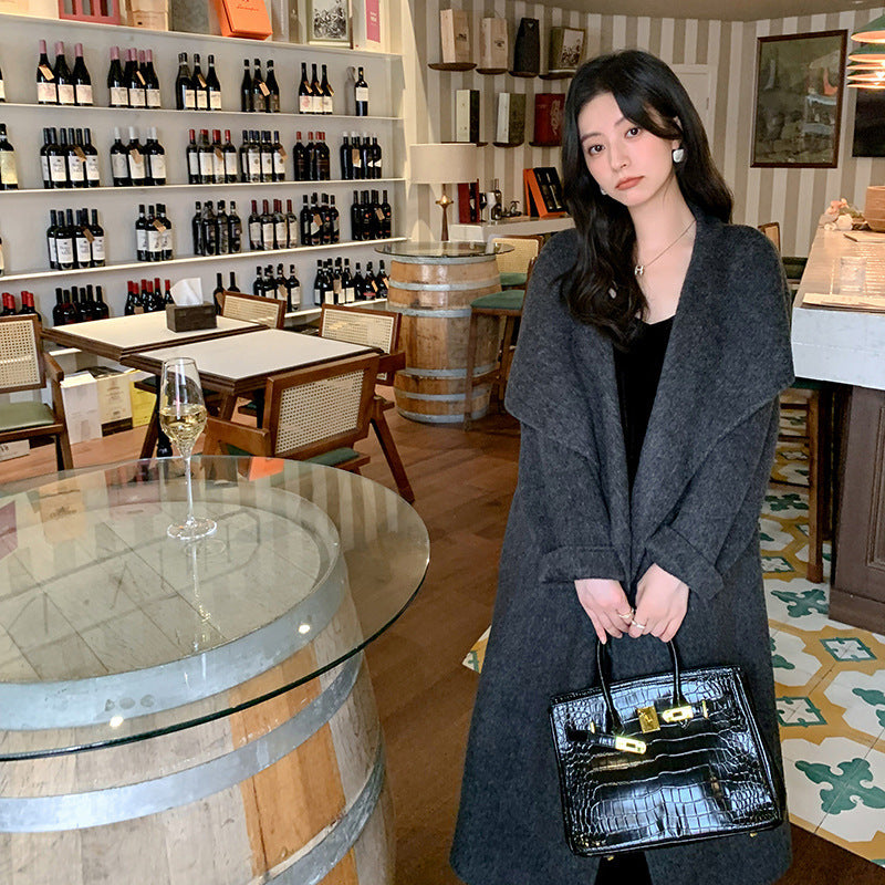Women's Large Lapel Pure Color Tied Warm Reversible Woolen Coat