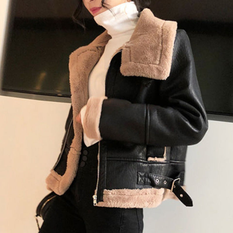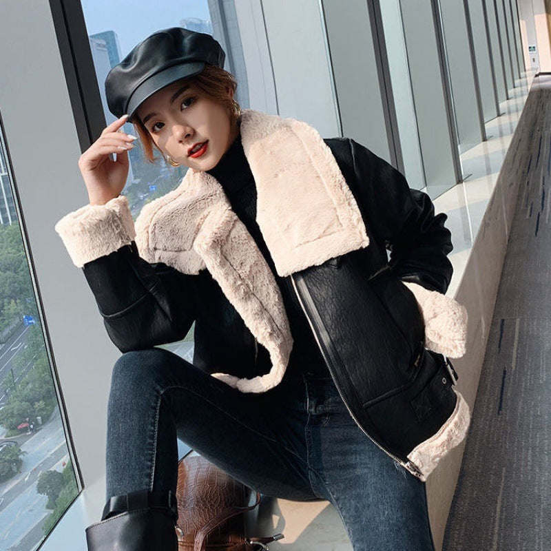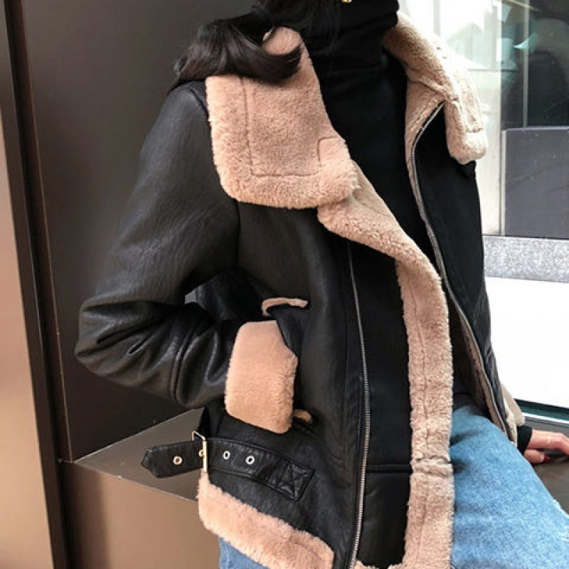 New velvet thick PU leather motorcycle suit