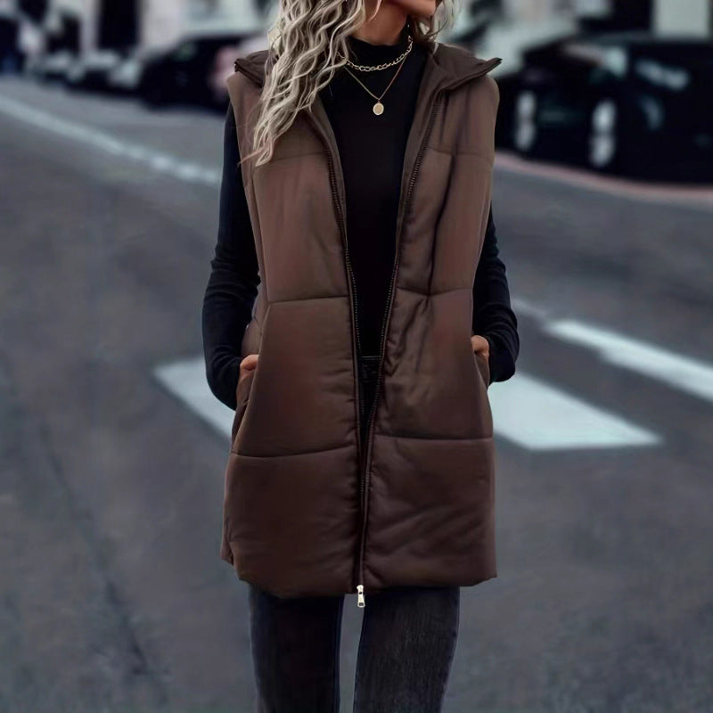• European And American Autumn And Winter Vest Fashion Solid Color Zipper Hooded