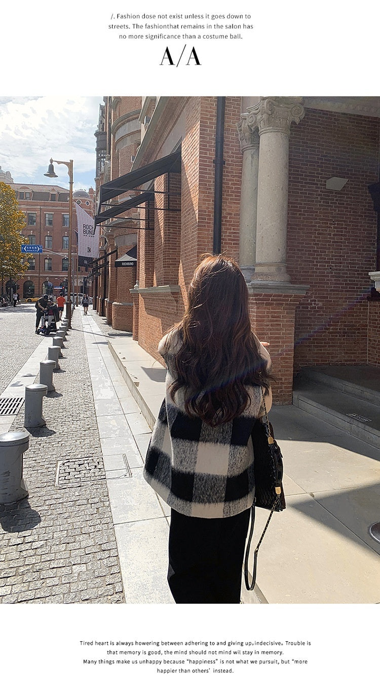 Black And White Lattice Pattern Lamb Wool Coat